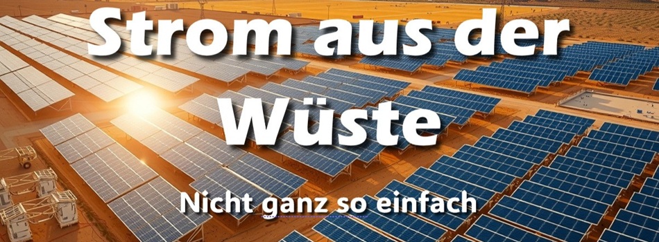 Anmerkung: Dass es kein prinzipiell unüberwindliches Hindernis darstellt, Solaranlagen in der Wüste aufzustellen, zeigen Länder, die in ihrem Staatsgebiet solche Gegenden haben: Die Anlagen in der Mohave-Wüste in den USA (insges. einige GW) genauso wie die gewaltigen Solaranlagen in Chinas Kubuqi (~100GW)- und Gobi-Wüste beweisen das eindrücklich!